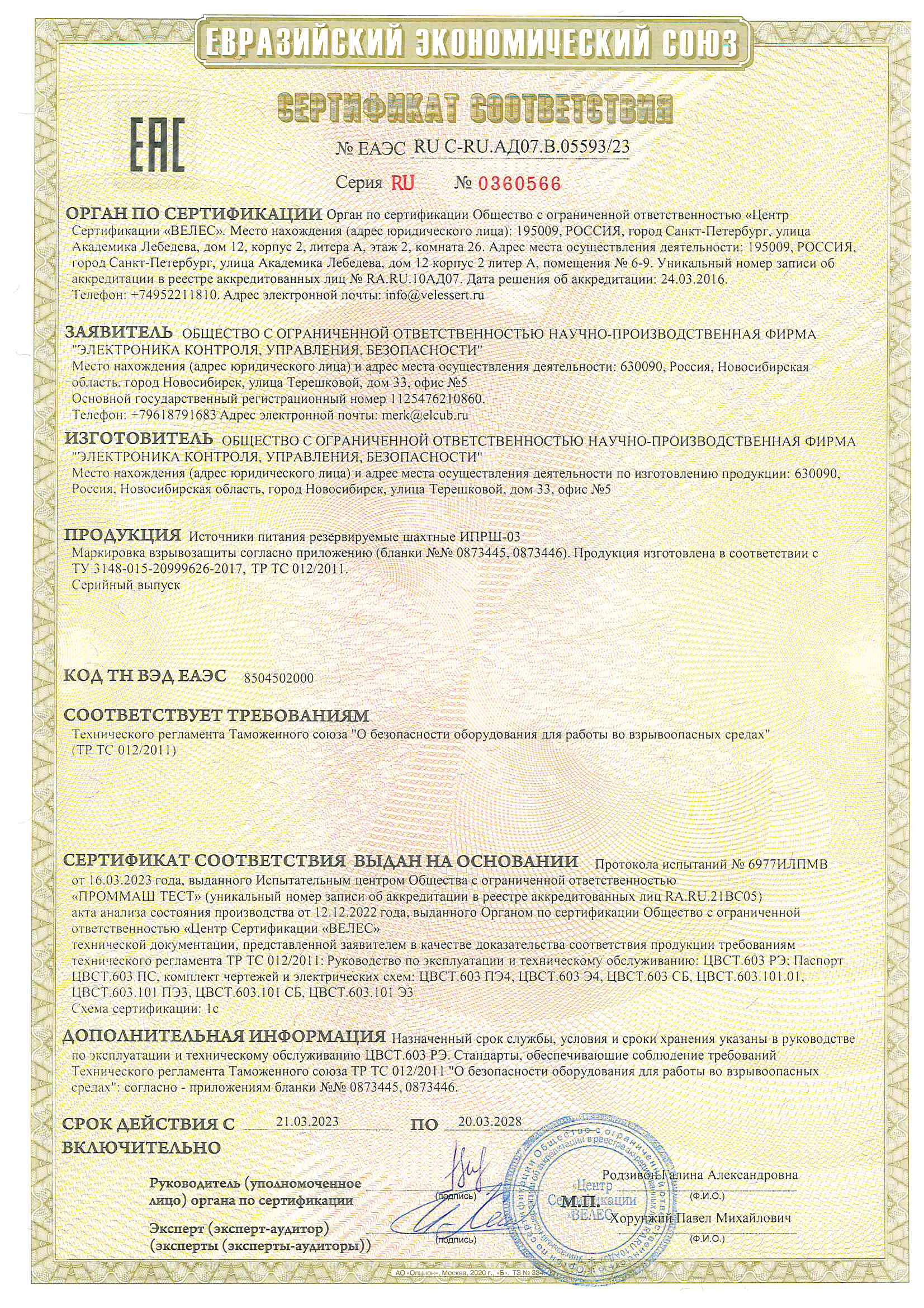 Источники питания резервируемые шахтные ИПРШ-03, сертификат соответствия №ЕАЭС RU C-RU.АД07.В.05593/23 [ Скачать ]