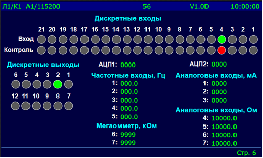 ● отображение информации о состоянии сигналов управления, входных дискретных и аналоговых датчиков;