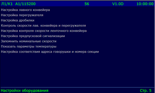 ● ввод параметров контроля оборудования лавы (уставки, времена) непосредственно с пульта КМШ-ГС-ЛК.