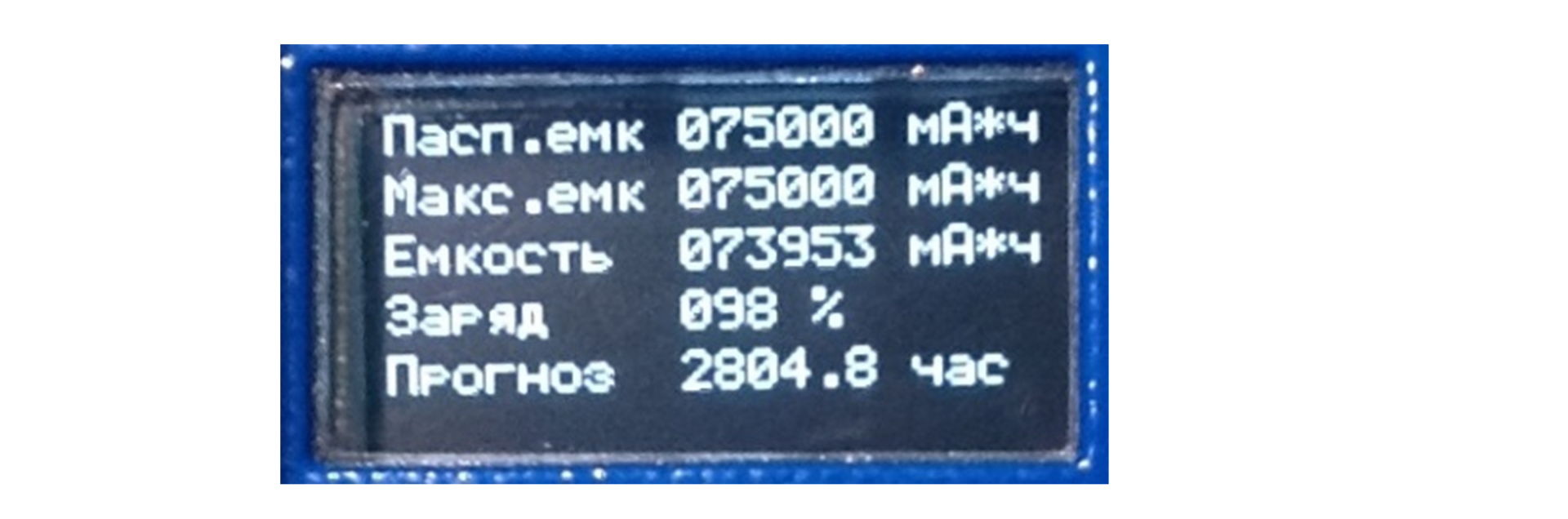 Информация о токах, напряжениях и уровне заряда выводится на дисплей.