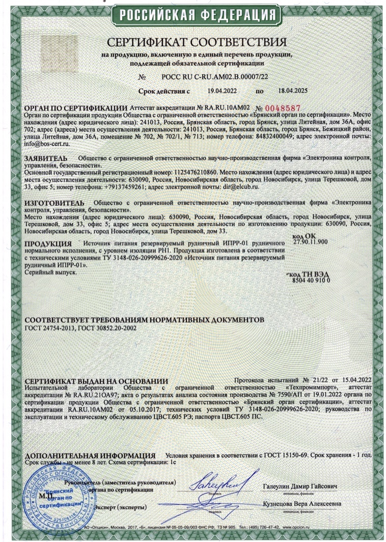 Источники питания резервируемые рудничные серии ИПРР-01 предназначены для питания электротехнических устройств при наличии и отсутствии напряжения в сети переменного тока на предприятиях с отсутствием взрывоопасных сред и относится к группе “рудничного нормального исполнения”.